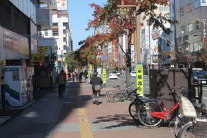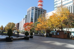 Sapporo itself is a giant city and was at one point (a long time ago) the capital of the country. Although we were too early for the Snow Festival, the weather was delightful, a crisp 16-ish degrees and sunlight raining down on everything. We walked the very american style block streets until we came to the main park, Odori Park, which runs east to west and at it's center contains Sapporo tower which we couldn't resist having a look around.